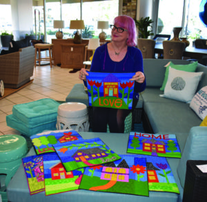 This workshop is based on the House Quilt Project, founded by Jamie Fingal in 2010. Quilting Arts Magazine challenged its readers to participate in the House Quilt Project, and over 300 quilts were collected and donated to Furnishing Hope. These works of art are displayed on the walls of the Furnishing Hope Gallery.